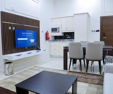 It offers direct in-room dining service via QR code, a tea maker, OSN+ premium TV channels, a telephone, as well as a dedicated high-speed private internet connection and a personal safe.